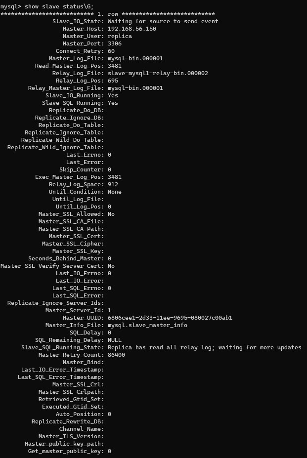 CHANGE MASTER TO MASTER_HOST='192.168.56.150', MASTER_USER='replica', MASTER_PASSWORD='Pass@123', MASTER_LOG_FILE='mysql-bin.000001', MASTER_LOG_POS=3481;