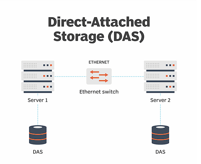 Bir adet fiziksel sunucunuz varsa ve sadece storage bu sunucu ile iletişime geçmesini isterseniz veya Veritabanı sunucularınızı birebir bağlantı kurmak isterseniz; DAS(Direct Attach Stora) mantığı